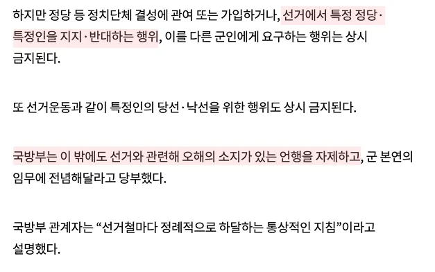 하지만 군인 신분이라면 특정 정당 ・ 후보 언급에 주의해야 해요!