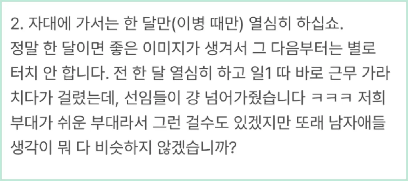 1. 자대배치 이후 딱 한 달만 열심히 하자