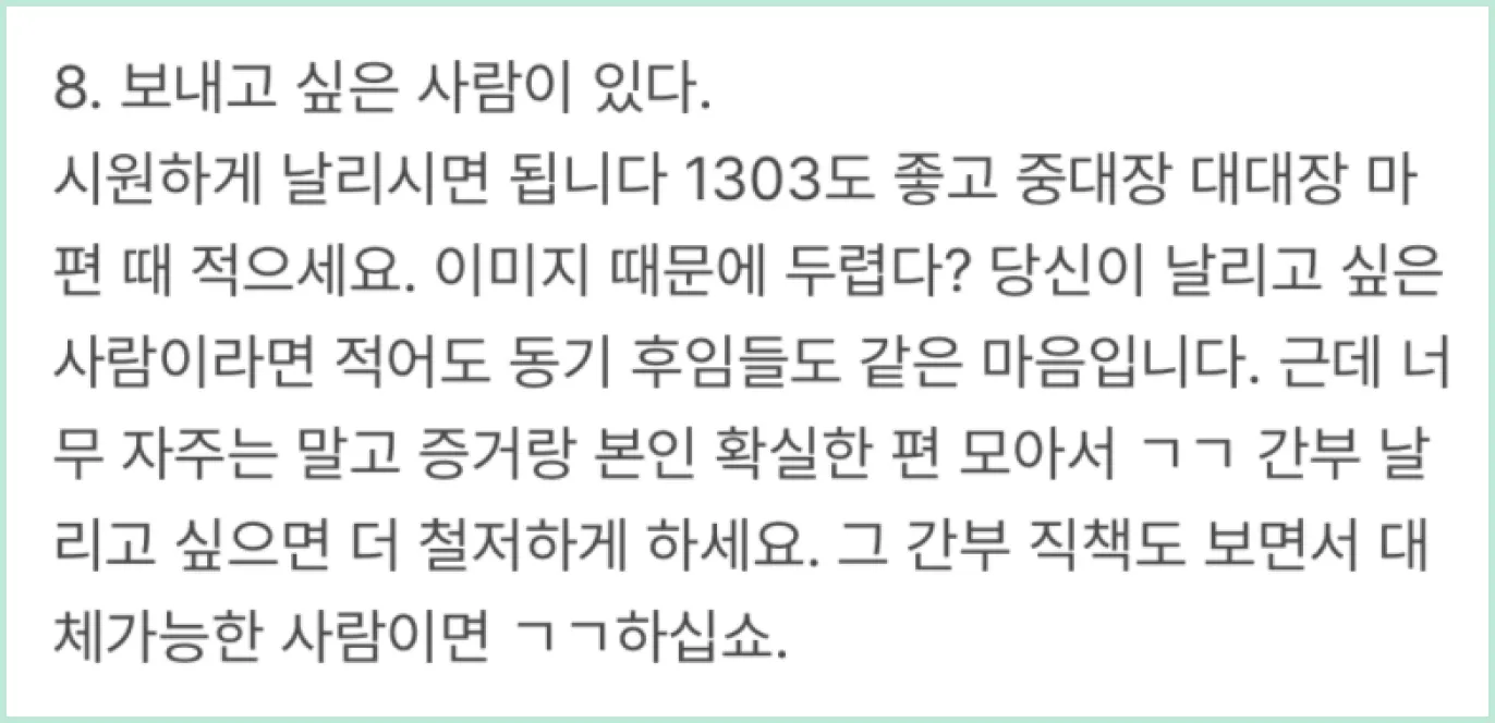 당신이 날리고 싶은 사람이라면 적어도 동기, 후임들은 같은 마음일 거다.