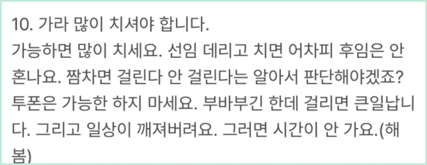 가능하면 가라는 많이 쳐라. 단, 걸린다 안 걸린다는 본인이 알아서 판단해야 할 문제다.