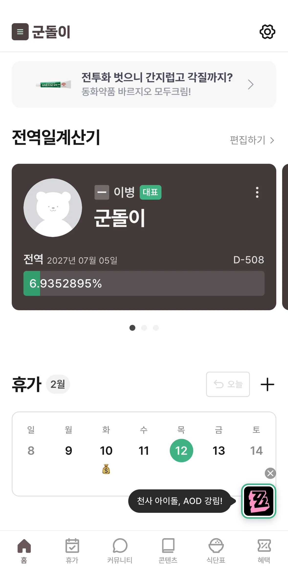 홈 화면 플로팅