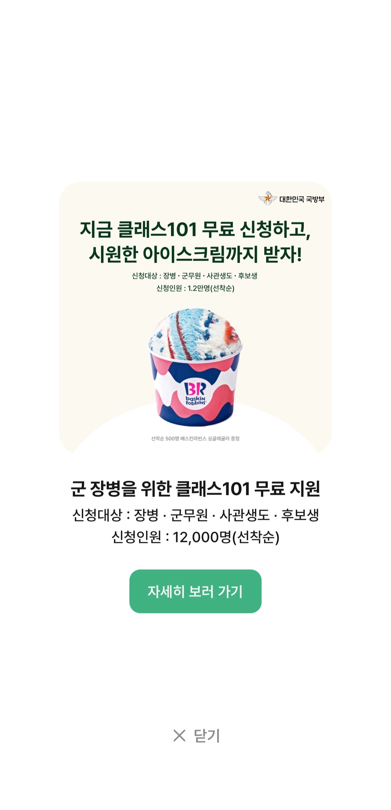 클래스101 군장병 무료 지원 캠페인