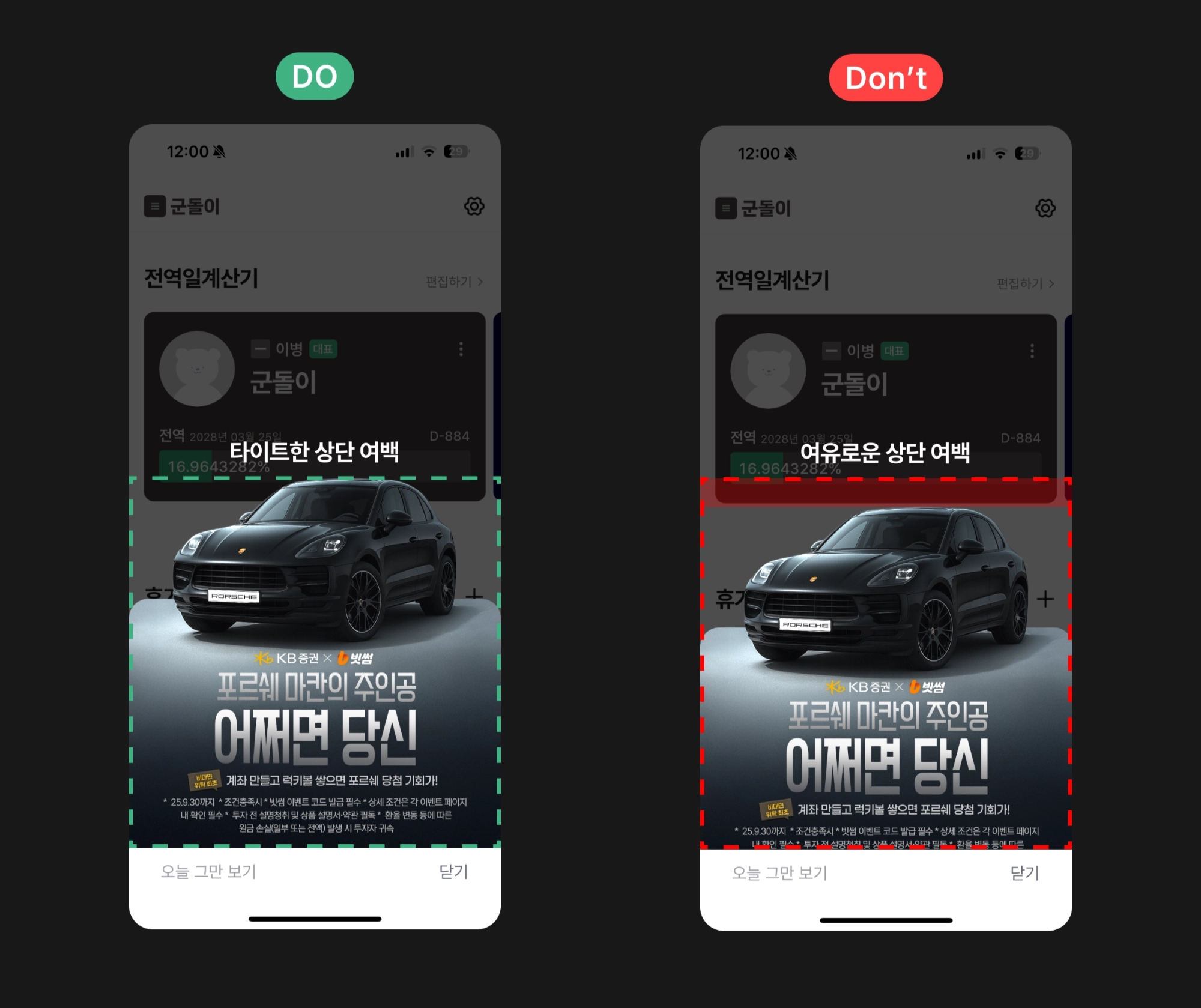 상단 빈 공간은 최대한 타이트하게 제작